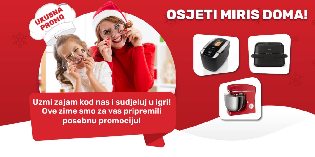 Od 6. studenog 2025. do 7. siječnja 2026. sudjeluj u našoj nagradnoj igri i osvoji jedan od tri kuhinjska uređaja – bread maker, airfryer ili kuhinjskog robota!