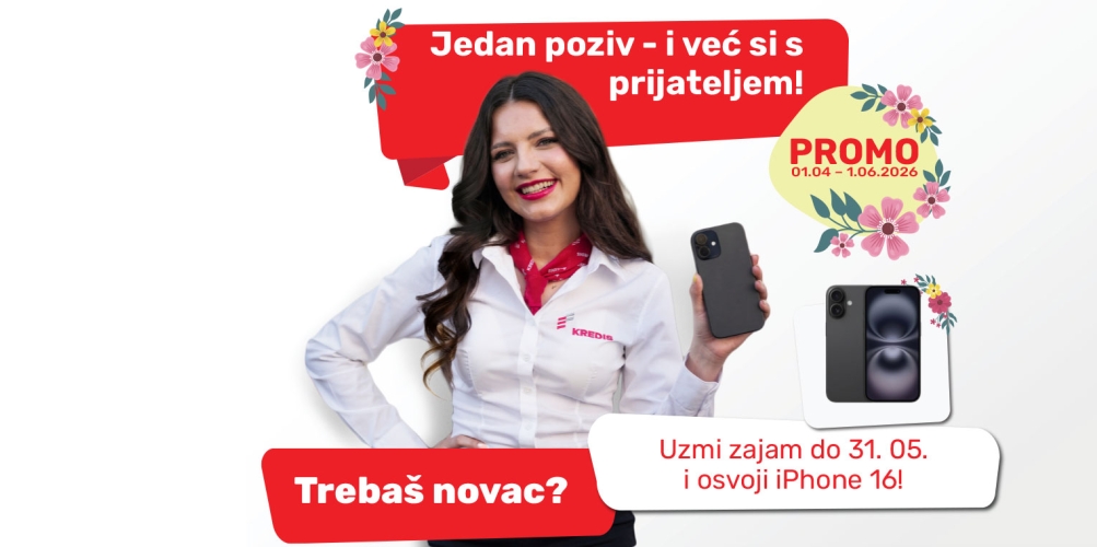 Pripremili smo posebnu proljetnu promociju koja spaja korisno i uzbudljivo. Svi koji se prijave za zajam do 31. svibnja automatski ulaze u nagradno izvlačenje u kojem mogu osvojiti iPhone 16.